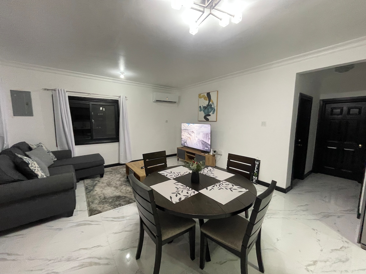 Njut av en avkopplande upplevelse på detta centralt belägna lägenhetskomplex i resortstil precis mittemot National Stadium, 15 minuter från flygplatsen. Moderna möbler och apparater, kabel-TV, Netflix, Amazon Prime, gratis wifi, luftkonditionering, varmvattenberedare, 24-timmars säkerhetsgrindat komplex, tennisbana, joggingspår, klubbhus, gym, gratis parkering och välskötta gräsmattor. Nära stora shoppingområden, fina restauranger, mataffärer, Bob Marley Museum, Devon House och Emancipation Park