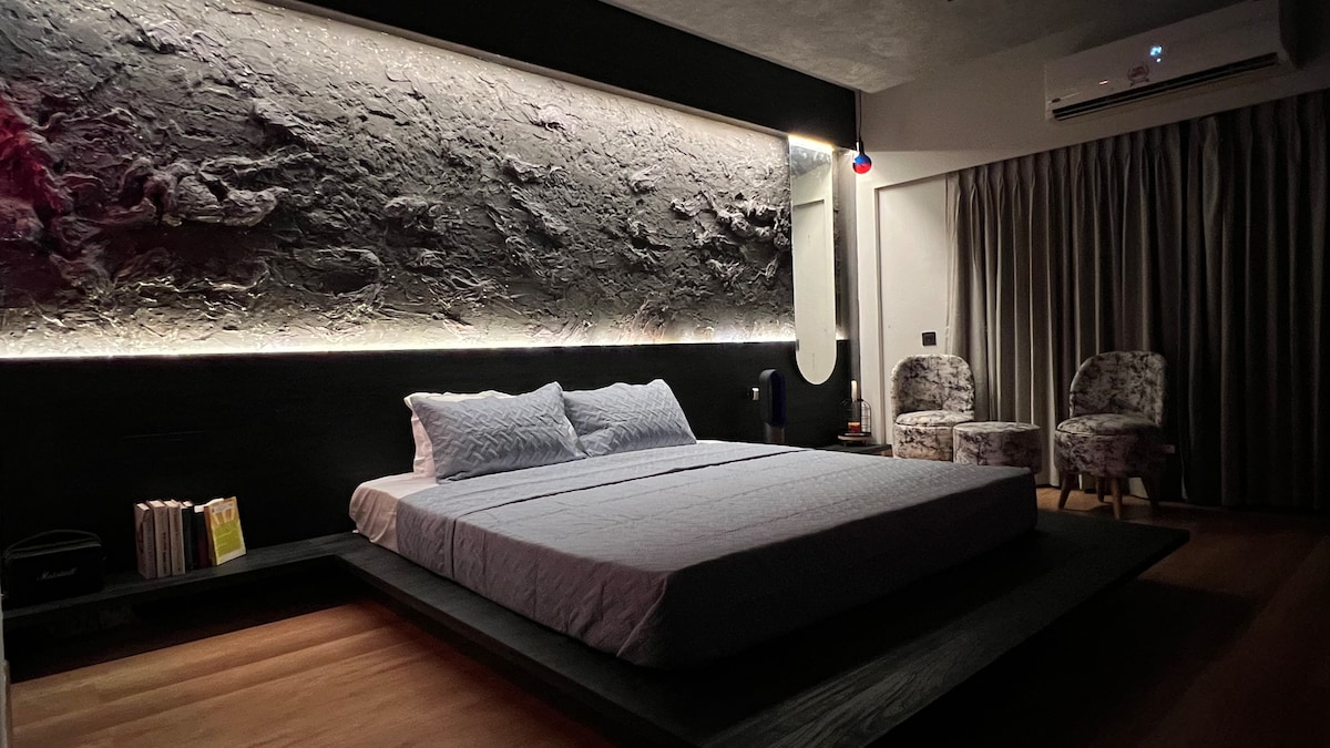 Ebb Är ett härligt ljust luftigt utrymme med en avslappnad atmosfär, det är en lägenhet med två sovrum och en terrass Beläget centralt och nära till alla restauranger, gallerior, sjukhus och turistattraktioner i staden Du kan välja denna vistelse oavsett om du är i staden för en affärsresa, en familjeresa, en vistelse, medicinsk vistelse etc. Den ligger på bottenvåningen med hiss och 24 timmars säkerhet och en parkeringsplats Zen och minimal inredning ger en lycklig känsla :)