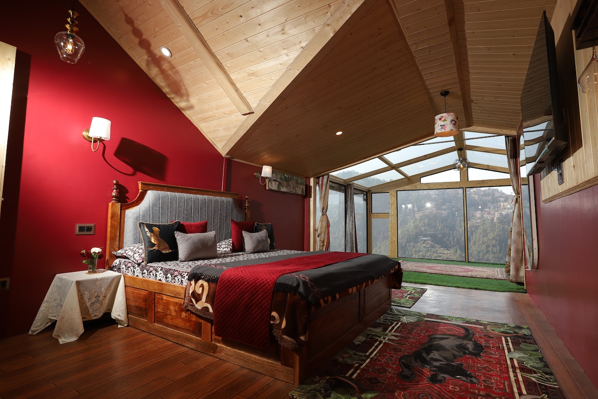 Välkommen till vårt mysiga men lyxiga vindshem. Om majestätisk utsikt, konstnärlig inredning och retro chic är din vibe är detta hemvist något för dig. Det är en perfekt kombination av konst och lyx samtidigt som det är superbekvämt. Detta är det mest lyxiga erbjudandet från Shimla Gypsy. Placerad på toppen av vårt hus med en 360° och himmelsvy, har den all komfort av ett fjällhus att erbjuda, mitt i naturen.