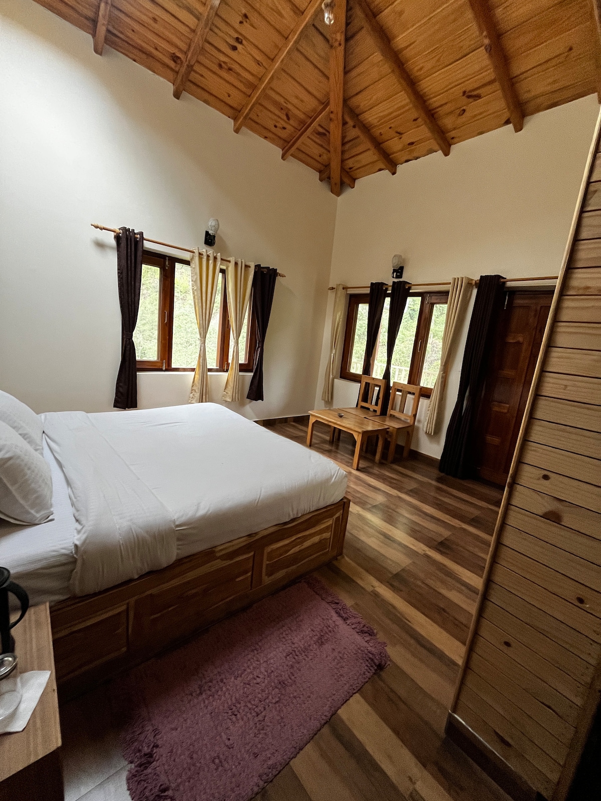 Detta eleganta ställe att bo på är perfekt för gruppresor. Jeoli River Side Cottages ligger på en lugn sluttning och erbjuder en fridfull flykt omgiven av naturen. Stugan har 2 rymliga sovrum med 3 bekväma dubbelsängar, perfekt för familjer eller små grupper. Bara en kort promenad nedför backen, en mild flod flyter i närheten, vilket ger lugnande sevärdheter och ljud till din vistelse. Vakna upp till frisk bergsluft, naturskön utsikt och den lugnande rytmen av rinnande vatten – din perfekta tillflyktsort vid floden.