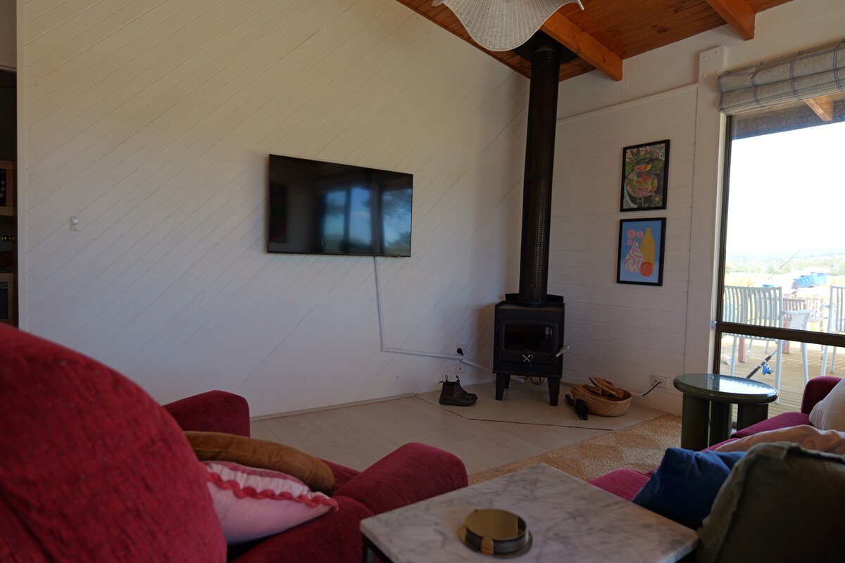 Välkommen till The Burrows, en stenstuga från 1860-talet som vi känsligt har återuppfunnit och restaurerat, och öppnat upp den för att ta in den ständigt föränderliga utsikten över Freycinet-halvön. Ett stort vardagsrum är hjärtat i boendet med en vedeldad spis i ena änden, fjädersoffa, fåtöljer och ett specialtillverkat fönsterstol med utsikt över Great Oyster Bay. Båda sovrummen har fantastisk utsikt över vattnet och vårt intima badhus med clawfoot bad och franska dörrar är det perfekta stället att titta på solnedgången reflekteras över Hazards