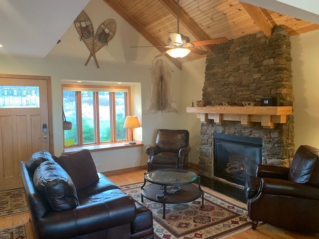 Enjoy lake views from our large deck, or walk up the street to enjoy the lake access area. Cook in our modern kitchen with granite countertops and gas stove. Includes 3 bedrooms, spacious living room with cathedral ceiling, knotty pine walls and a gas burning fireplace! Relax in the 4 season porch. In the backyard use the propane grill or sit by the fire pit. Walk or drive to the bars & restaurants. Towels and sheets included. Must be 25 years old to rent.