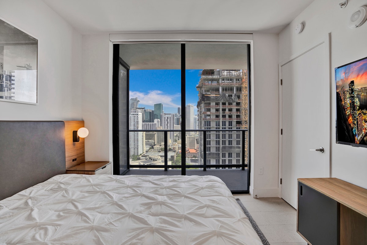 Modern Miami Studio med fantastisk utsikt! Njut av ett mysigt utrymme med en dubbelsäng, smart-TV, snabbt WiFi och en privat balkong. Perfekt för avkoppling efter att ha utforskat stranden, nattlivet och de bästa matställena i närheten. Beläget tvärs över gatan från Bayside Marketplace Waterfront. Inkluderar ett pentry, central luftkonditionering och säker byggnadsåtkomst. Perfekt för ensamresenärer eller par som söker komfort och stil i hjärtat av Miami. Boka din resa idag 🌴