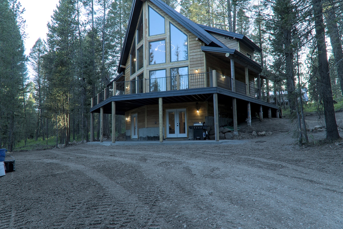 ALL NEW FOR 22-23! Same amazing location but brand new construction. Lots more space with 5 Bedrooms and 4 bathrooms, plus extra room in the lofts and in the full basement. Covered deck too. Near the end of the road with National Forest in the back yard and at the end of the dead end street, so no neighbors behind you and no traffic. Its located just 20 minutes from Yellowstone park via US Hwy 20. The cabin is quiet and private but still only 5 minutes away from restaurants and stores.