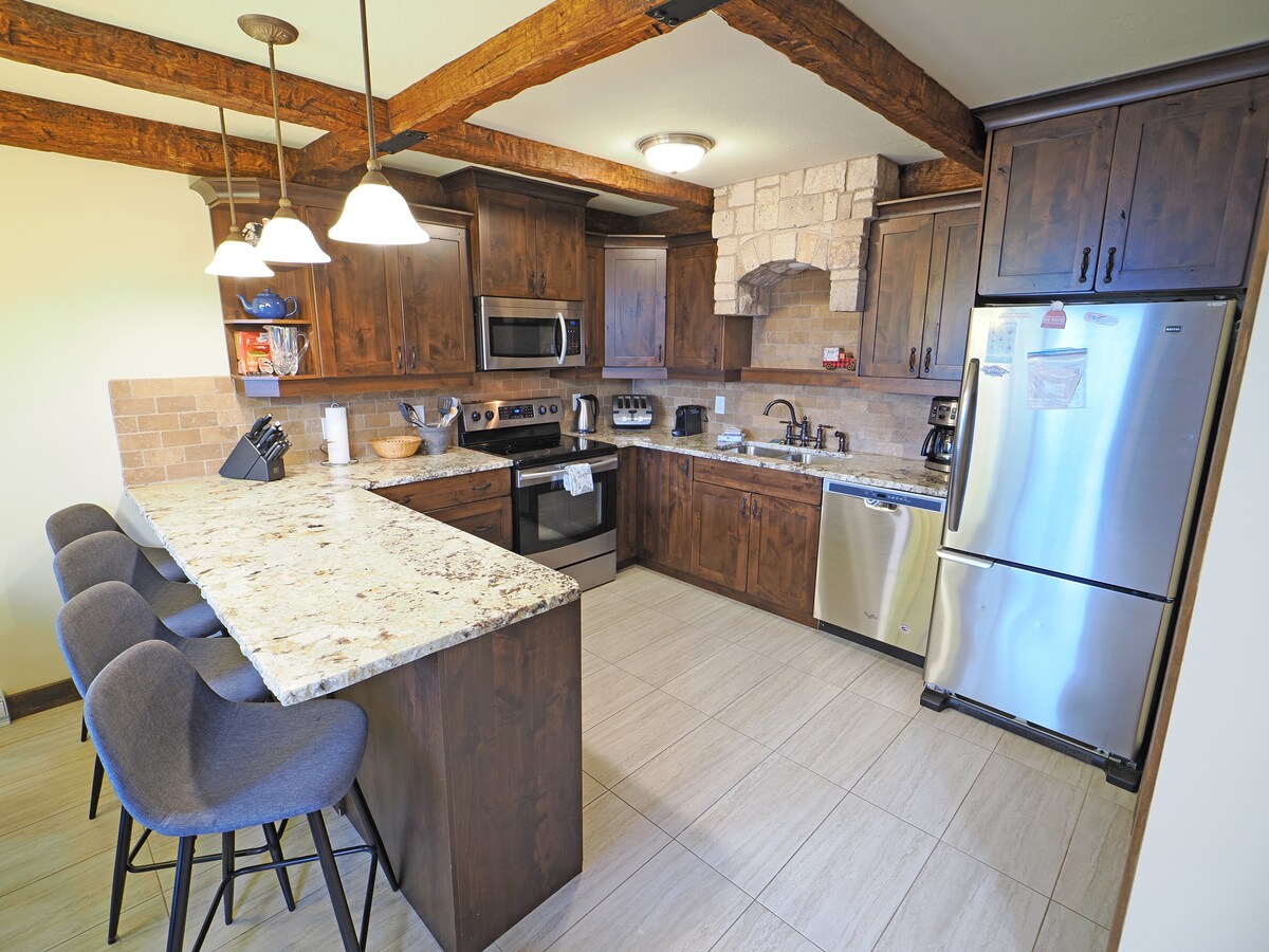 Ski In/Out Condo med en stugkänsla och privat bastu