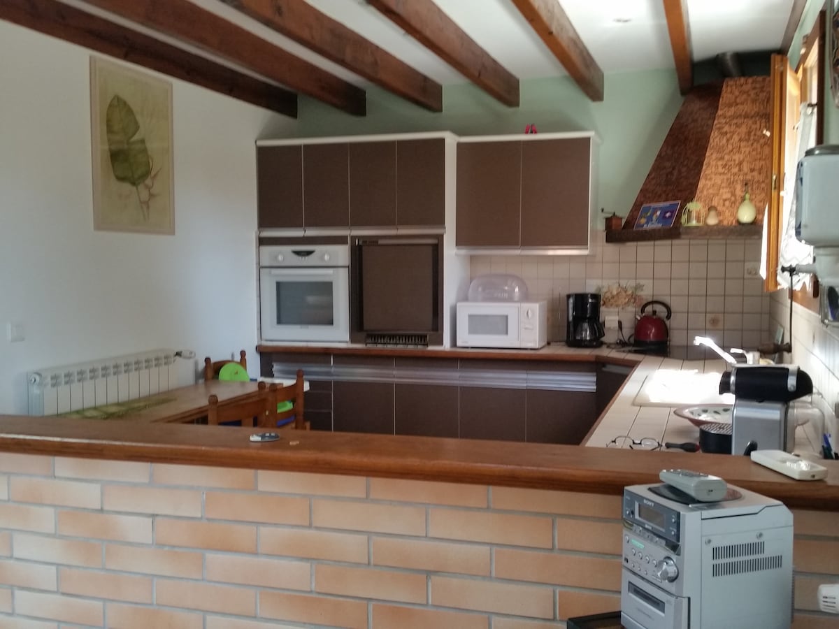 Litet charmigt fristående hus med trädgård, i centrum av Aiguillon två minuters promenad från hamnen och stranden. Ljust och mycket lugnt. Fullt utrustat amerikanskt kök, vardagsrum med ett stort bågfönster med fri sikt. Vedspis. En mezzanin med säng för två personer och en säng för en person på bottenvåningen. Allt för att charma dig!