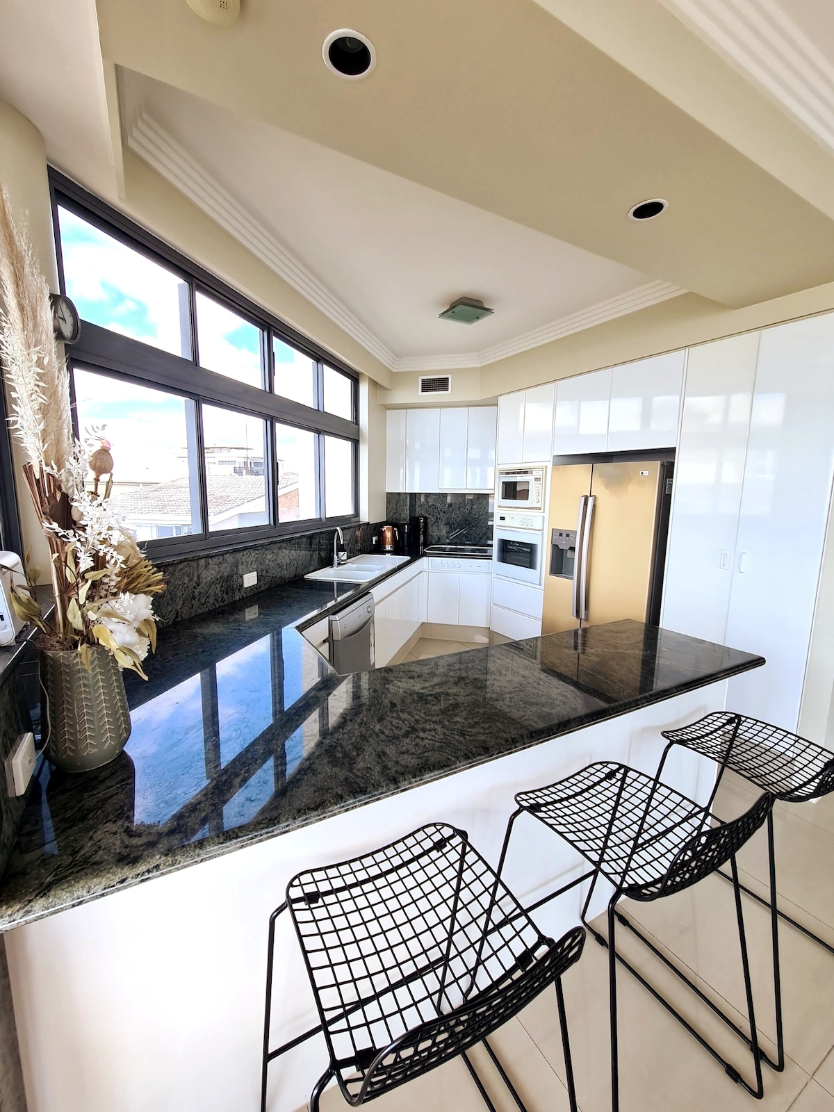 Rymlig lägenhet vid stranden med magnifik utsikt över stranden, perfekt för familjer eller romantiska utflykter. Mastersovrum med Queen-säng, ensuite, WIR, Strandutsikt & balkong. Andra sovrummet med 2 x King singles eller 1 x King säng. Alternativ för 2 rollway's mot en extra kostnad, inkl. när du bokar 5+ gäster. Öppen planlösning kök, vardagsrum som flyter ut till den täckta balkongen med utsikt över poolen, spa och strand. Njut av Pelikanmatning på Charis Seafood dagligen En minnesvärd semester som du inte vill lämna