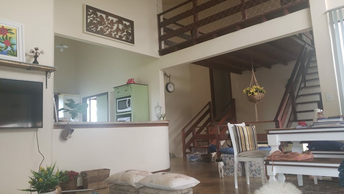 Ett mycket mysigt hus som bekvämt rymmer 4 par plus 12 singlar, i mitten av en liten stad, med ett charmigt torg, en charmig landsbygd, med ett underbart vattenfall, finns det 5 minuter från dessa vattenparker, från Floripa-sidan med sina 42 vackra stränder, också nära den vackra stranden Palmas.