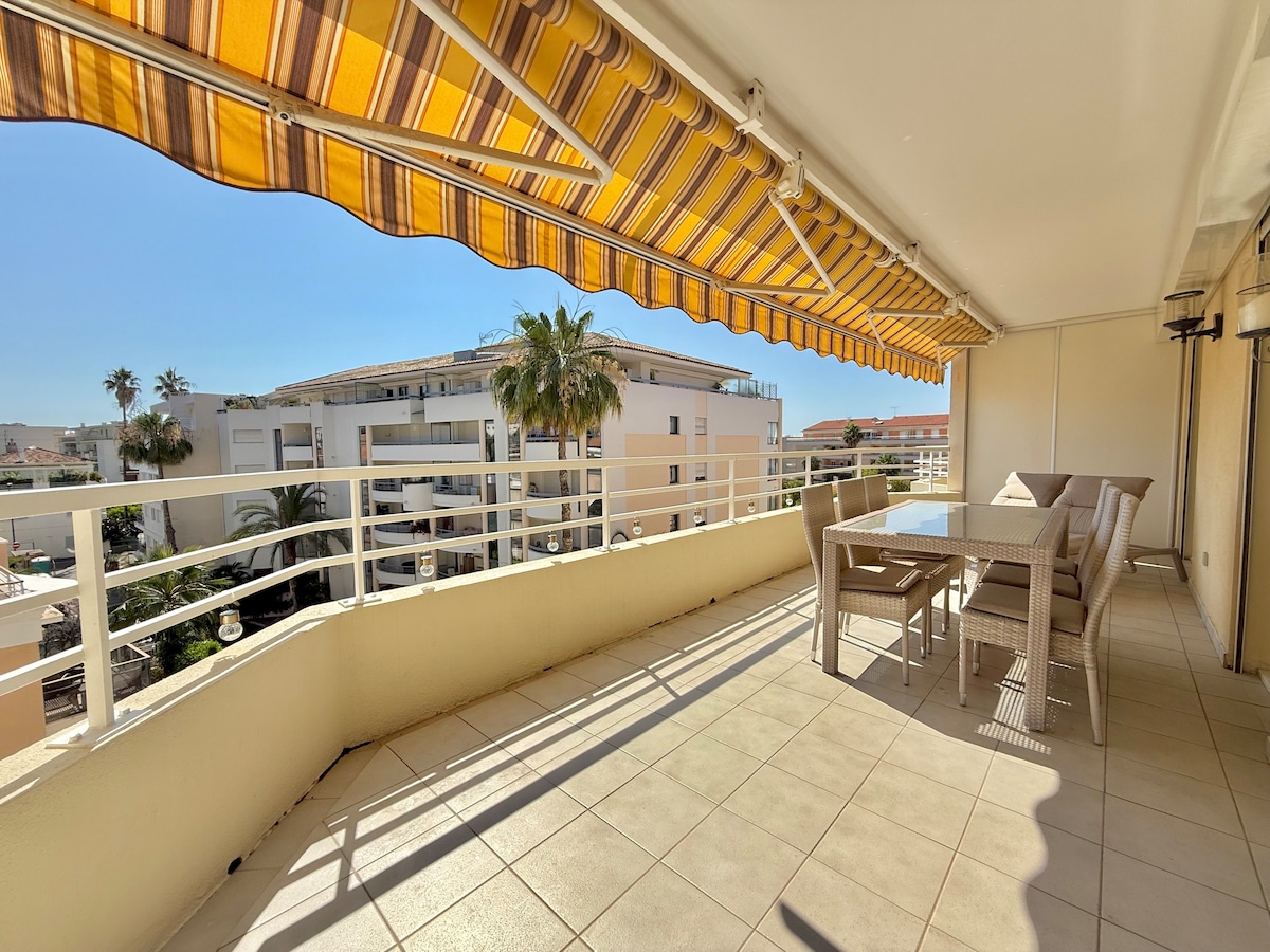 Upptäck en fridfull oas badad i ljus, helt omdesignad av en arkitekt. Denna exceptionella lägenhet ligger på översta våningen i en prestigefylld bostad och välkomnar dig med sin raffinerade inredning och exklusiva ytor, utformade för gästernas komfort och välbefinnande. Så snart du anländer kommer du att bli förtjust i utrymmenas elegans, bekvämligheternas kvalitet, lugnet på de två privata terrasserna som bjuder in dig att koppla av mellan himlen och havet.