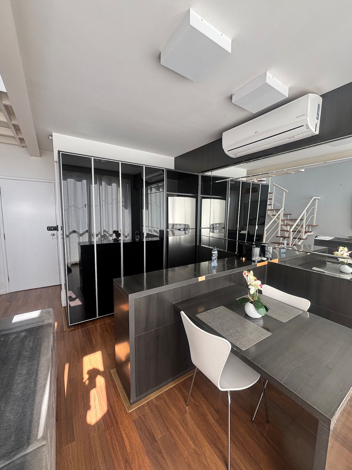 Studion ligger på 31: a våningen i den högsta byggnaden i centrum, med en modern och välkomnande design, samt en imponerande utsikt över staden. Från fönstret kan du beundra Anhangabaú-dalen, det historiska centrum, antennerna på Av. Paulista: ett av de vackraste landskapen i São Paulo. Det är byggnaden där SampaSky ligger och det är möjligt att gå till de viktigaste attraktionerna i centrum. Den har luftkonditionering, 55-tums TV med appar, kök utrustat med grundläggande redskap, spishäll (1 mun), mikrovågsugn och minibar.