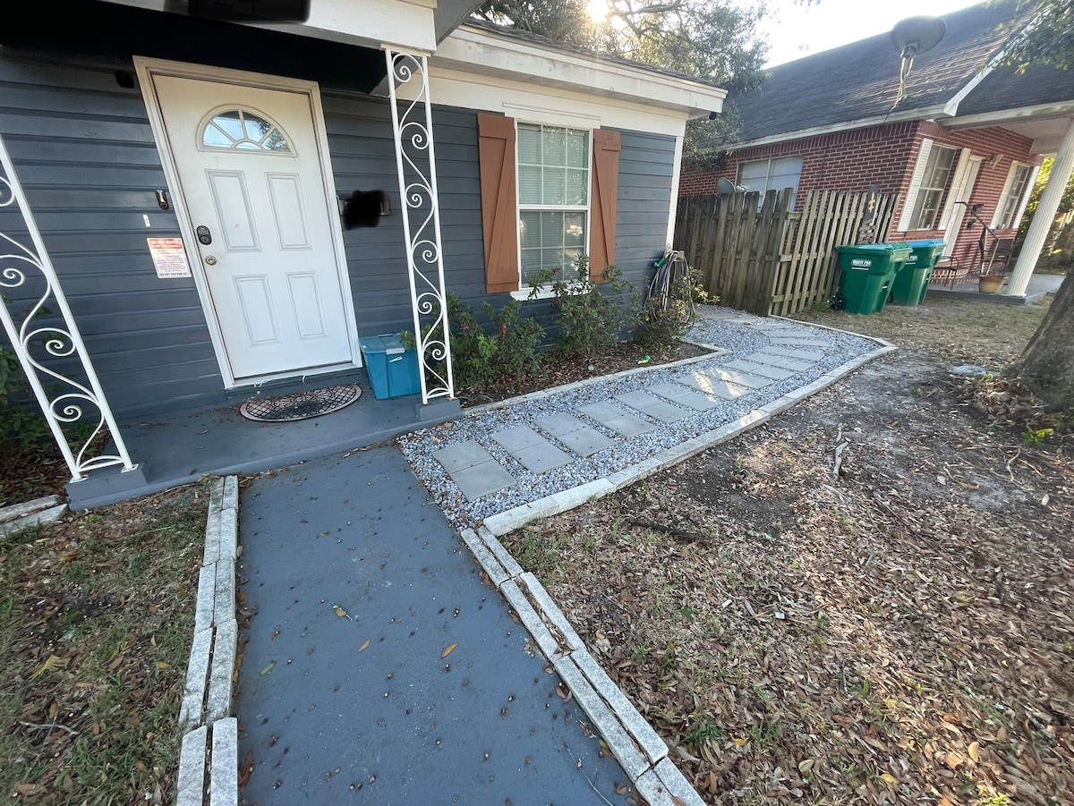 Detta privata gästboende är anslutet till huvudhuset med enkelheten av ditt eget sovrum, badrum, vardagsrum och arbetsutrymme samt en uteplats med ett staket bakgård. Parkera precis vid din privata ingång som ligger på gatan som leder dig till stranden. Centralt beläget 2 miles från gästfrihetscentret i centrala Gulfport som inkluderar många platser för underhållning såsom det nya akvariet, Jones park och Island View Casino. Vacker och privat bostadsgata.