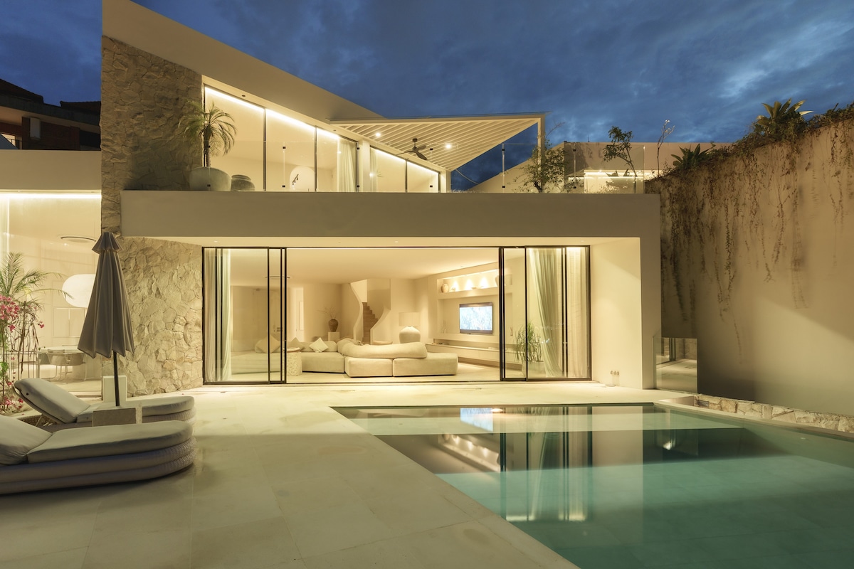 Helt ny designervilla i en fridfull Badung-enklav • 2 eleganta luftkonditionerade sovrum med tropisk trädgårdsutsikt • Badrum med moderna bekvämligheter • Stor privat pool omgiven av frodig grönska — perfekt för grillning • Öppet vardagsrum och fullt utrustat kök • 300 Mbit/s höghastighets-Wi-Fi – perfekt för distansarbete • Netflix, PS5 på begäran • Dagligen rengöring med rena handdukar och sängkläder • Barnsäng och barnstol på begäran • Concierge-service för flygplatstransfer, skoteruthyrning med mera