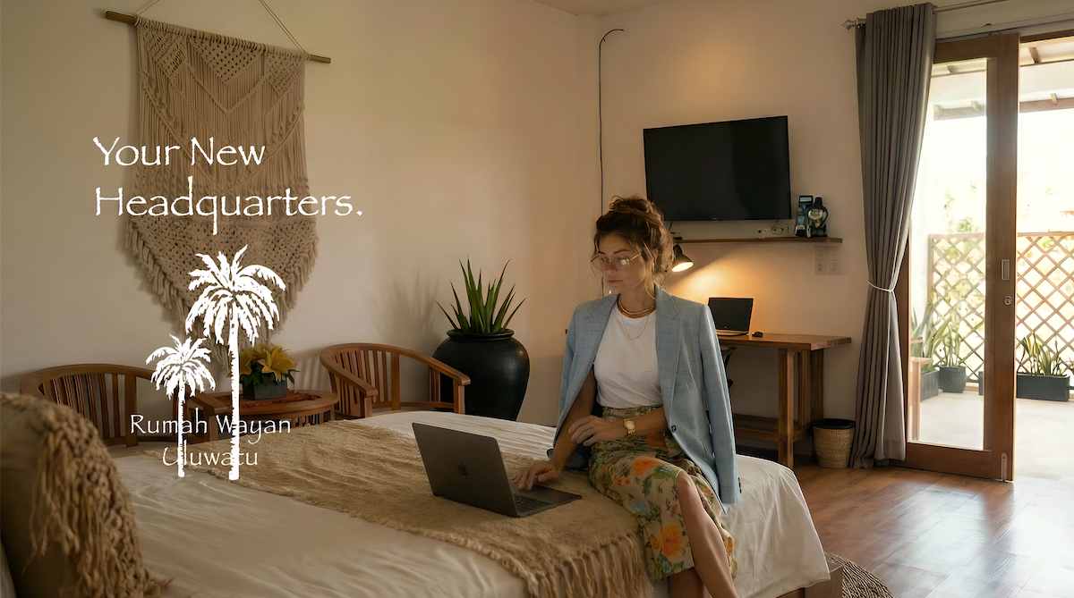 I den vackra landsbygden Uluwatu 1,2 km från Padang Padang, oavsett Uluwatu-byggnadsexplosionen, ligger våra fastigheter tyst på 2 000 m/2 mark inbäddad i skogen. 400 meter från huvudvägen, bästa surfstränderna, restauranger och bekvämligheter i området Denna 85 m/2 Super Suite är utrustad med 2X2 mt säng, eget badrum med stort badkar, walk-in garderob, fullt utrustat kök, bord och stolar, terrass med bänk, Starlink internetanslutning, skrivbord TV, AC
