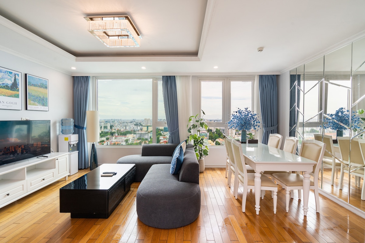 • Lägenheten ligger i centrum av Ho Chi Minh City distrikt 1, det är mycket bekvämt att ta sig runt till attraktionerna, bara 1 minuters gångavstånd till 24h närbutik. • 55 m ² Rymligt ett rum, ett vardagsrum + stor terrass + separat öppet kök + privat badrum, lämpligt för par, ensamma eller små familjer. • Madrasser och premiumsängkläder för en lugn natts sömn • Panoramisk balkong med en livlig gatavy över First County • Använd Vietnam top.1 viettel nätverkskommunikationsföretagets högsta flaggskeppsnivå superhög hastighet oberoende nätverk (minst 500mbps till 1gbps), uppfyller alla typer av stora onlinespel/filmtittande/underhållning/kontor. • Fullt utrustat kontorsområde: höghastighets-wifi, samtidigt, LAN-kabel, skrivbord, kontorsstol och fjärrarbete. • Lägenheten är utrustad med hiss. • 24-timmars övervakningssystem och säkerhetskonfiguration med en låsbox för lösenord för enkel tillgång till rumsdörrens nyckel. • Holografisk projektor stöder youtube. • Motorcyklar kan parkeras gratis i lobbyn på bottenvåningen.