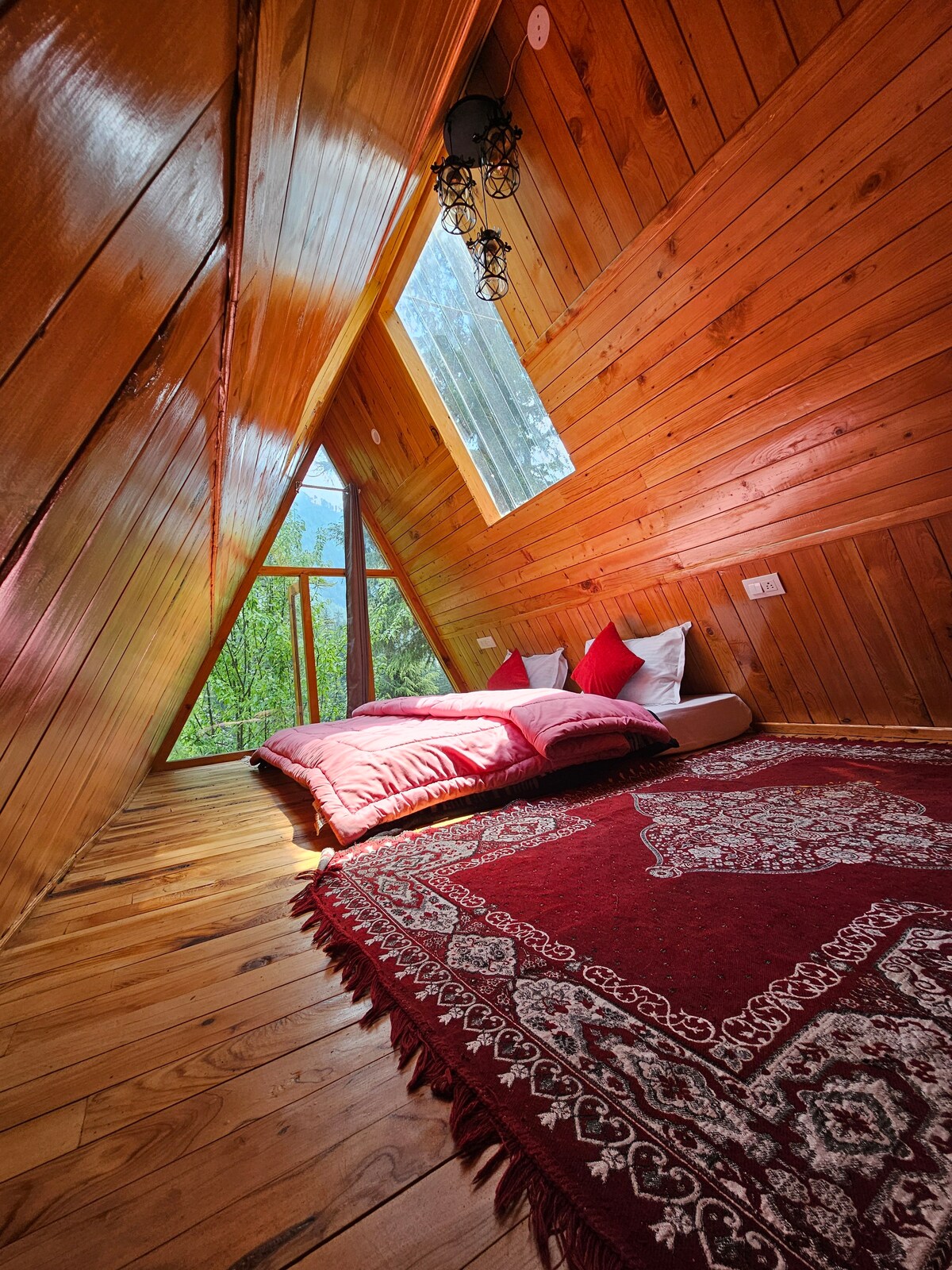 Experience the perfect blend of nature and opulence, perched atop Tandi hill near Jibhi. Delight in a luxurious soak in a hot bubble bath while relishing breathtaking views directly from your bathtub. Nestled away from road and traffic noise, the only sounds you'll encounter are the melodic chirping of birds. With an all-glass cabin, you might even spot a flying squirrel or catch a glimpse of a shooting star in serene night sky. Unwind and enjoy the tranquility of this chic, peaceful retreat.
