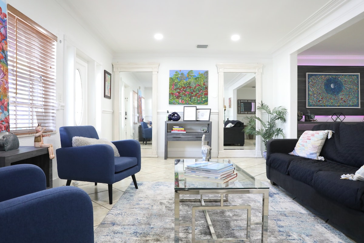 Vi är glada att kunna vara värdar för dig i vårt mysiga boende i Miami! Du kommer bara att vara en kort bilresa från populära platser som Hollywood Beach (21 min), Haulover Beach (24 min) och South Beach (24 min), så du är nära allt det roliga, men tillräckligt långt för att njuta av lite lugn och ro. Notera: Restiderna kan variera beroende på trafik eller tillställningar. Vi ser fram emot att göra din vistelse bekväm och trevlig!