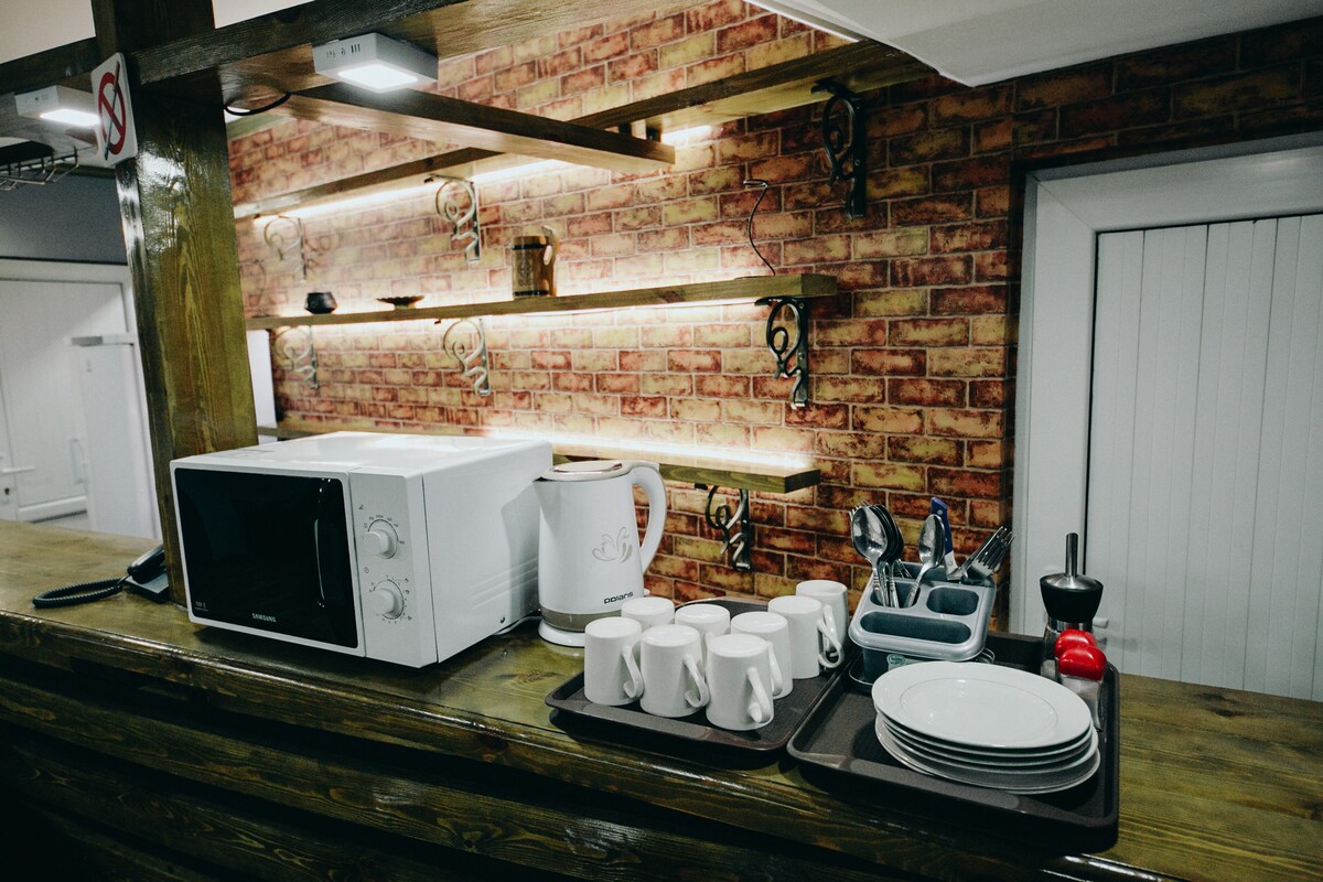Mysigt vandrarhem i hjärtat av staden. Perfekt för bekväma, prisvärda vistelser med enkel tillgång till de viktigaste sevärdheterna, parker och lokala restauranger. I närheten: en stormarknad, Frunze livsmedelsbutik och fiskmarknad. Gården är lugn och välskött, med en veranda som är idealisk för varma sommarkvällar. Vandrarhemmet är känt för sin renlighet och hemtrevliga atmosfär och är perfekt för resenärer, studenter eller alla som besöker staden.