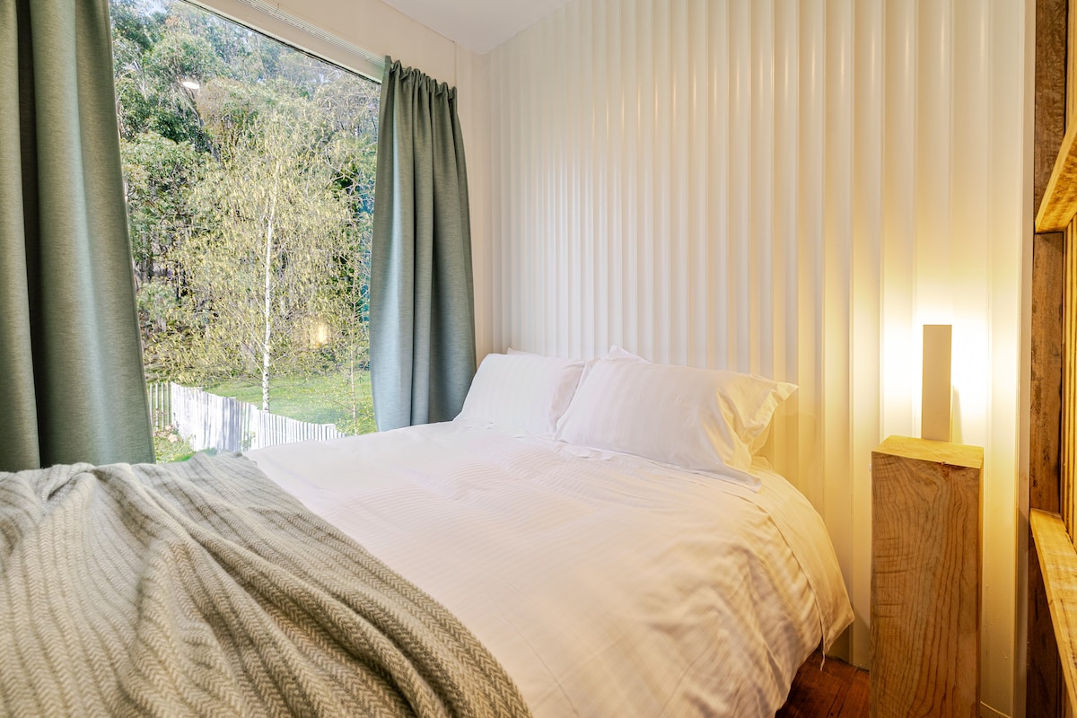 Vår stämningsfulla stuga ligger bland gummiträden, omgiven av fågelsång. Uppkallad efter Gububurras (Kookaburras) som delar fastigheten med oss, är det bara tio minuters promenad till Mount Macedon by för kaffe eller en kort bilresa för att hitta vingårdar, bymarknader och skogsstigar. Alternativt under de svalare månaderna kan du kura ihop dig vid elden och läsa eller njuta av utsikten från terrassen vid eldstaden. Den lugnande effekten av Guruburra på våra gäster är nästan omedelbar