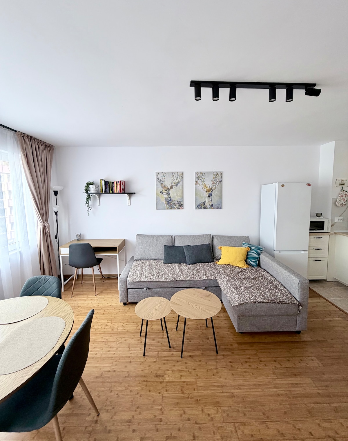 Elegant och mysig lägenhet • Utmärkt läge. Välkommen till vår eleganta och mysiga studiolägenhet – perfekt för avkoppling, en affärsresa eller en kort semester! Boendet är modernt inrett, med uppmärksamhet på detaljer och allt som behövs för en bekväm vistelse. Här finns ett ljust vardagsrum med en bekväm soffa och TV, ett fullt utrustat kök och ett lugnt sovrum med en bekväm säng. Boendet ligger i ett bekvämt och lugnt område, lämpligt för både avkoppling och arbete.