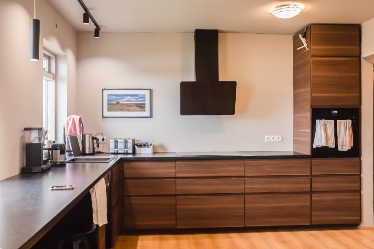 Denna tillflyktsort är mycket unik och avskild. Den har spektakulär panoramautsikt över två av Islands mest kända vulkaner och fantastiska norrskensobservationer. Huset är mysigt med massor av fönster för att njuta av utsikten. Sovplats för 4 personer, en bekväm säng i full storlek och en lyxig bäddsoffa. Detta boende har mycket karaktär och isländska konstverk på väggarna också kraftfullt wi-fi och en smart-TV. Eget tvättrum med tvättmaskin och torktumlare.