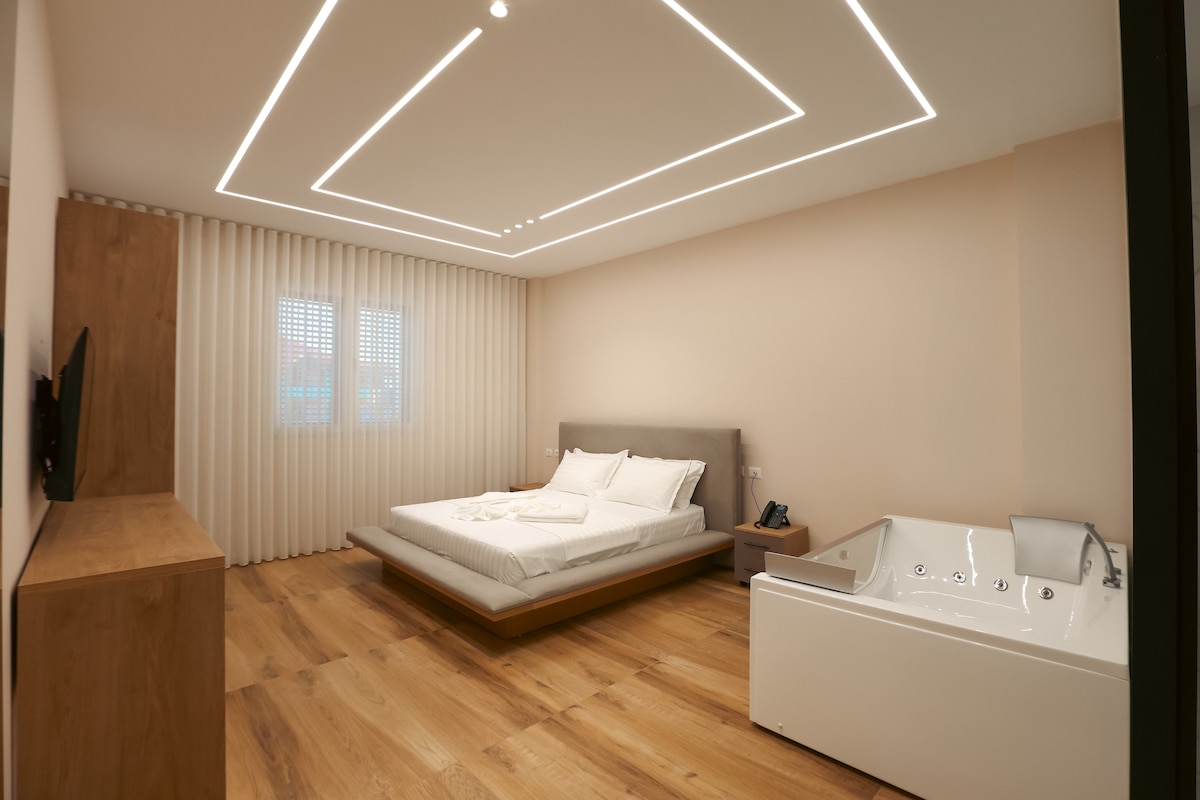 Bo i ett elegant boutique-rum i Blloku, Tiranas livliga centrum. Njut av premium sängkläder för ultimat komfort och gratis kaffe, te och vatten på flaska. Rummet har snabbt Wi-Fi, en smart-TV och alla väsentligheter för en bekväm vistelse. Självständig incheckning gör din ankomst problemfri. Omgiven av trendiga kaféer, restauranger och nattliv kommer du att uppleva det bästa av staden. Oavsett om det gäller affärer eller fritid erbjuder detta eleganta boende allt du behöver för en perfekt vistelse.