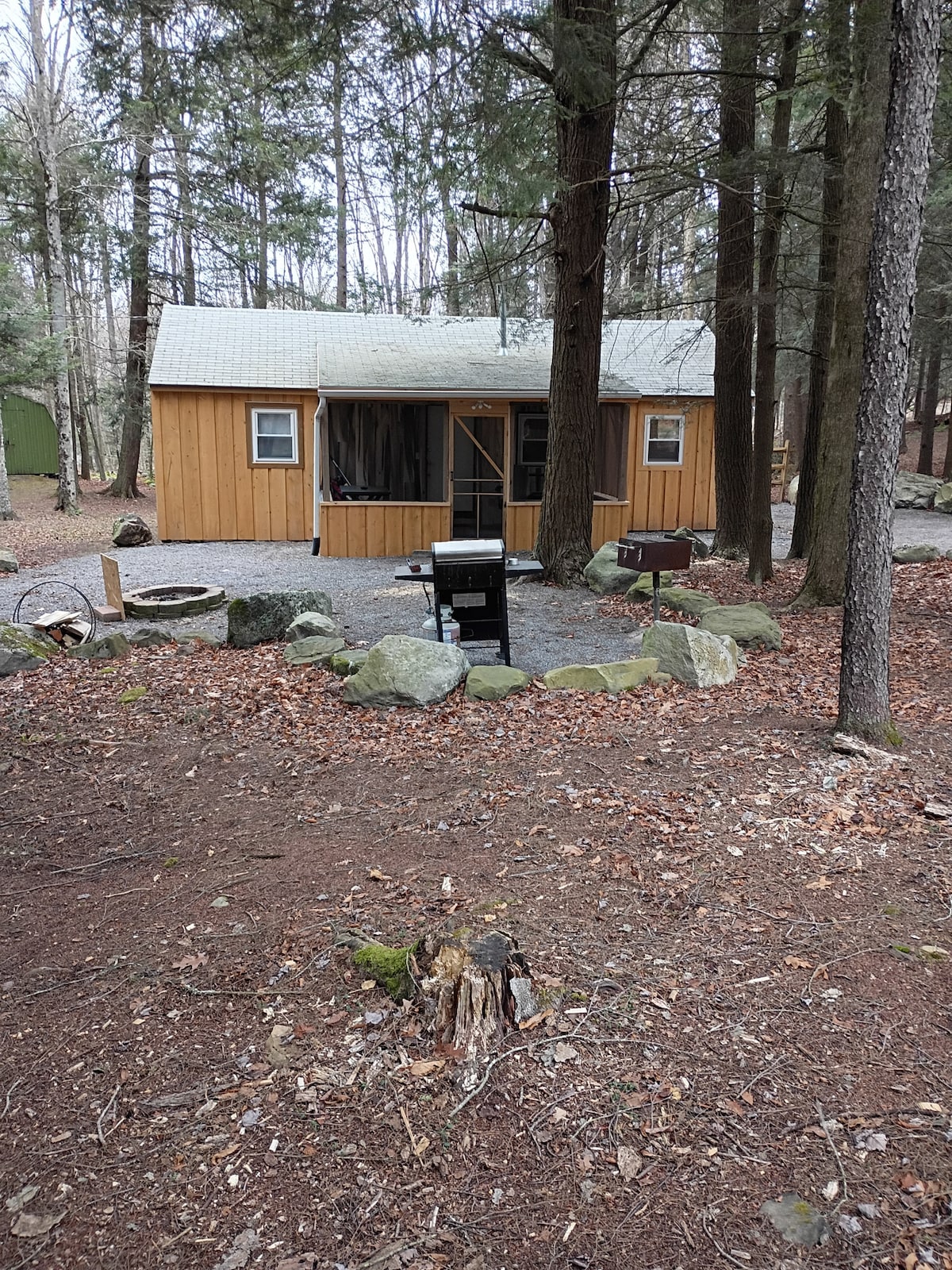 Enjoy the camping experience at this unique rustic cabin. Nestled back in the woods, enjoy a peaceful evening by the firepit, take a walk down the miles of country dirt road... you never know what wildlife awaits around the corner, or kick back and take in the fresh mountain air under the screened in front porch It's an easy drive 30 minutes to Wellsboro and Pine Creek Valley. It'sonly 20 minutes to Ski Sawmill. Bring your snowmobile up and ride the state trails. Maps are included