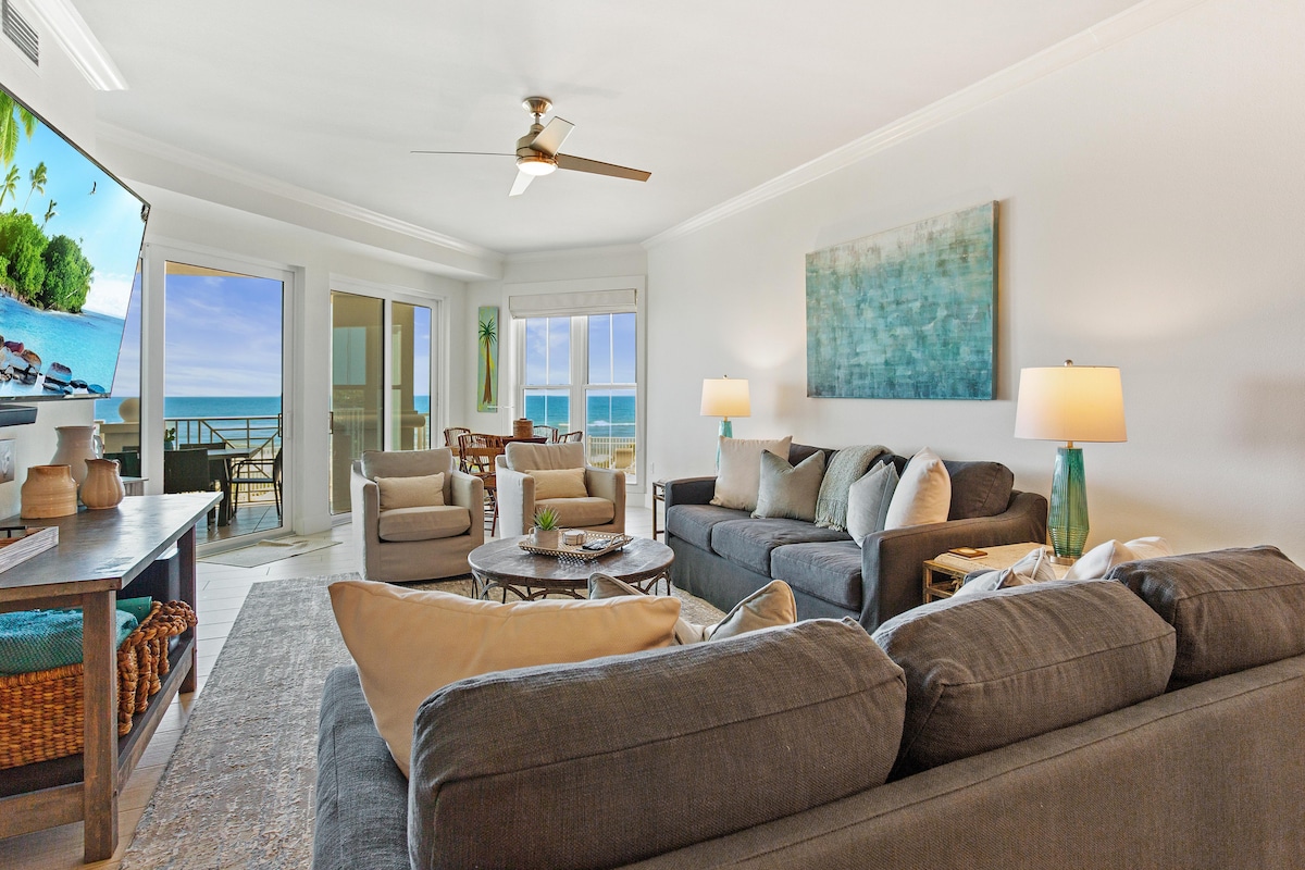 Paradiset väntar på din vackra lägenhet vid stranden med fantastisk utsikt över den PRIVATA STRANDEN från din egen privata balkong. Den svepande utsikten fortsätter från insidan, genom de stora fönstren och skjutdörrarna i glas, inklusive en havsutsikt från sovrummet. Denna välutrustade, familjevänliga enhet erbjuder 3 sovrum, bäddsoffa och 3 badrum för att bekvämt rymma 6-8 personer. Gratis strandservice (2 stolar och paraply) ingår mars-oktober och 4 cyklar året om
