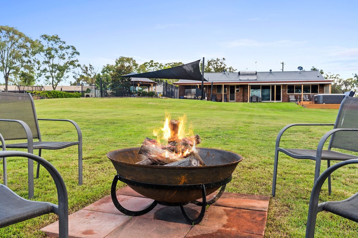 ✨DIN ULTIMATA FAMILJESEMESTER VÄNTAR✨ Vårt fantastiska moderna semesterhus på 9 tunnland är omgivet av pittoresk landsbygd och stjärnklar himmel. Perfekt för familjer eller en utökad familj. Med: • Stor bubbelpool utomhus • Lägereld • BBQ & Alfresco Dining • Bushwalking & Fishing • Lekrum för barn med leksaker • Teaterrum • Studsmatta • Vattenlek • Utomhussporter • Grönsaksträdgård, älv- och sensorisk trädgård Läs mer om vårt prisbelönta boende. Inga fester, inga besökare – absolut inget av det