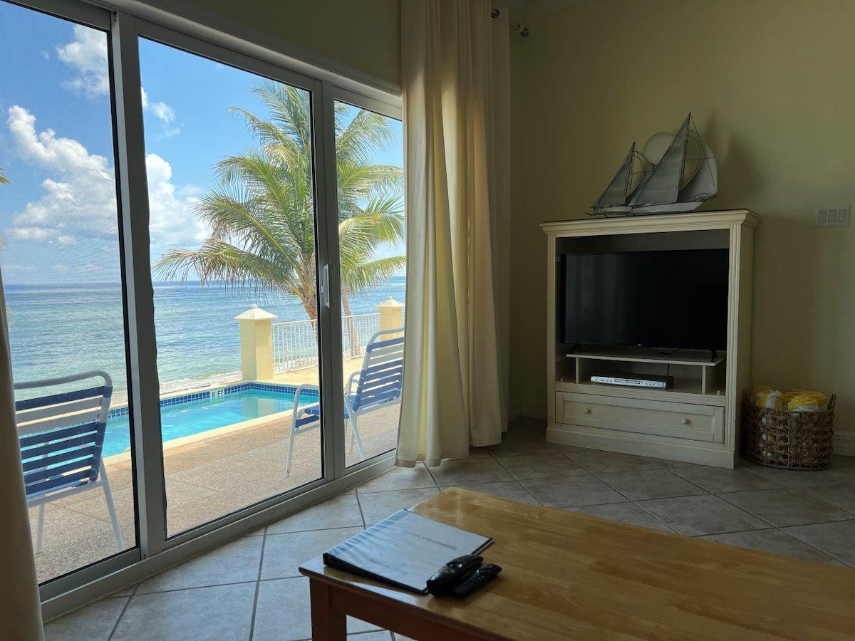 Oceanfront Caribbean Style Villa som är centralt belägen i Bodden Town för en avslappnad upplevelse i lugn och ro. Alla 12 villor i komplexet är vid havet med utsikt över havet. Vi har 6 villor på bottenvåningen och 6 villor på våningen. Du kan njuta av poolen med barstolar i vattnet eller sitta på en privat strand nära havet. Vi har en strandsträcka som gör att du kan gå i miles. Vi är omgivna av ett korallrev som ger våra gäster tillgång till några av de bästa snorkling på ön.