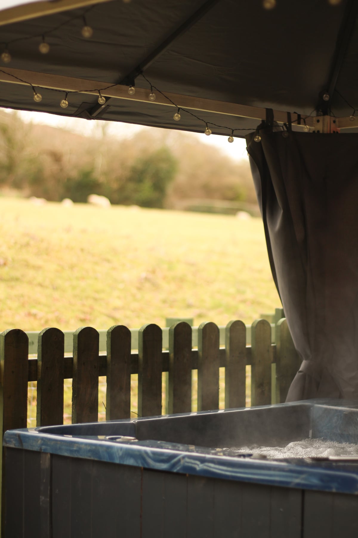 Croeso i Heulog yn yr Cae’r Fedwen Barns. This cosy abode was transformed from an old farming barn to a modern-day cottage and is now the perfect getaway for any couple to escape. The bedroom has a luxuriously comfortable king sized bed for you to unwind in, and a bathroom with a swoon worthy shower and bath. Enjoy your morning paned (cuppa) either in the open spaced kitchen dining area, the private hot tub, or on the private outside patio area.