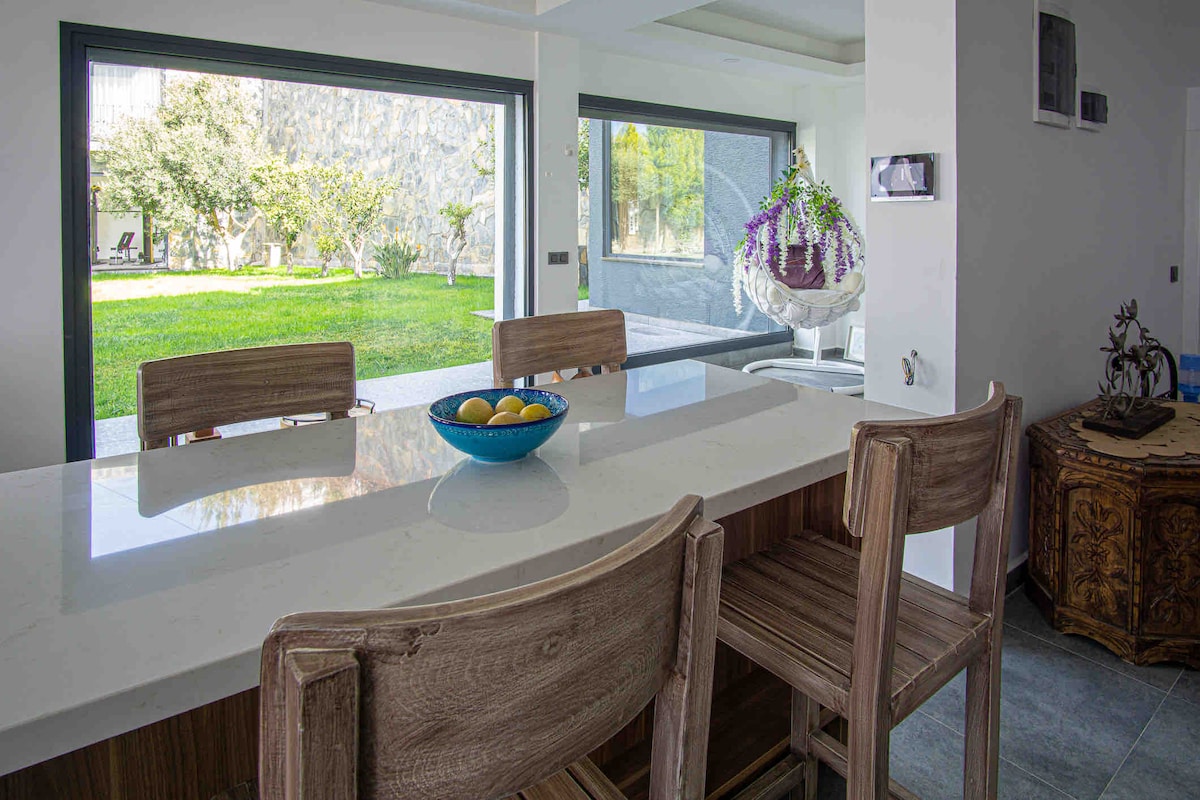 Fabulous Villa ligger i området Yalikavak med nära räckvidd till det lyxiga och exklusiva köpcentret Yalikavak Marina. Vår Villa är ett helt nytt byggår 2020 med omgiven av citron och tallar. Maximalt 5 minuters gångavstånd till stormarknader som Migros-Carrefour etc. Alla nödvändiga köksredskap finns tillgängliga hemma. Vår villa erbjuder en lugn och anständig miljö för familjer med barn och de som är uttråkade med stadsmassan.