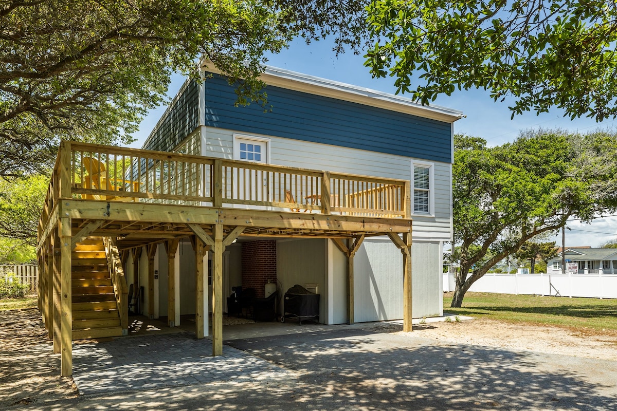 Att gå uppför trappan känns som att komma in i ett fridfullt litet sagoland. Den ligger högt uppe på en sanddyn och omgiven av träd och erbjuder en lugn, undangömd känsla - men det ligger mitt i hjärtat av Emerald Isle. Bara ett kvarter från Öresund och ungefär sju kvarter från havet, är du perfekt positionerad för att njuta av det bästa av två världar. Med butiker, restauranger och attraktioner i närheten är denna avkopplande tillflyktsort den perfekta platsen för din resa.