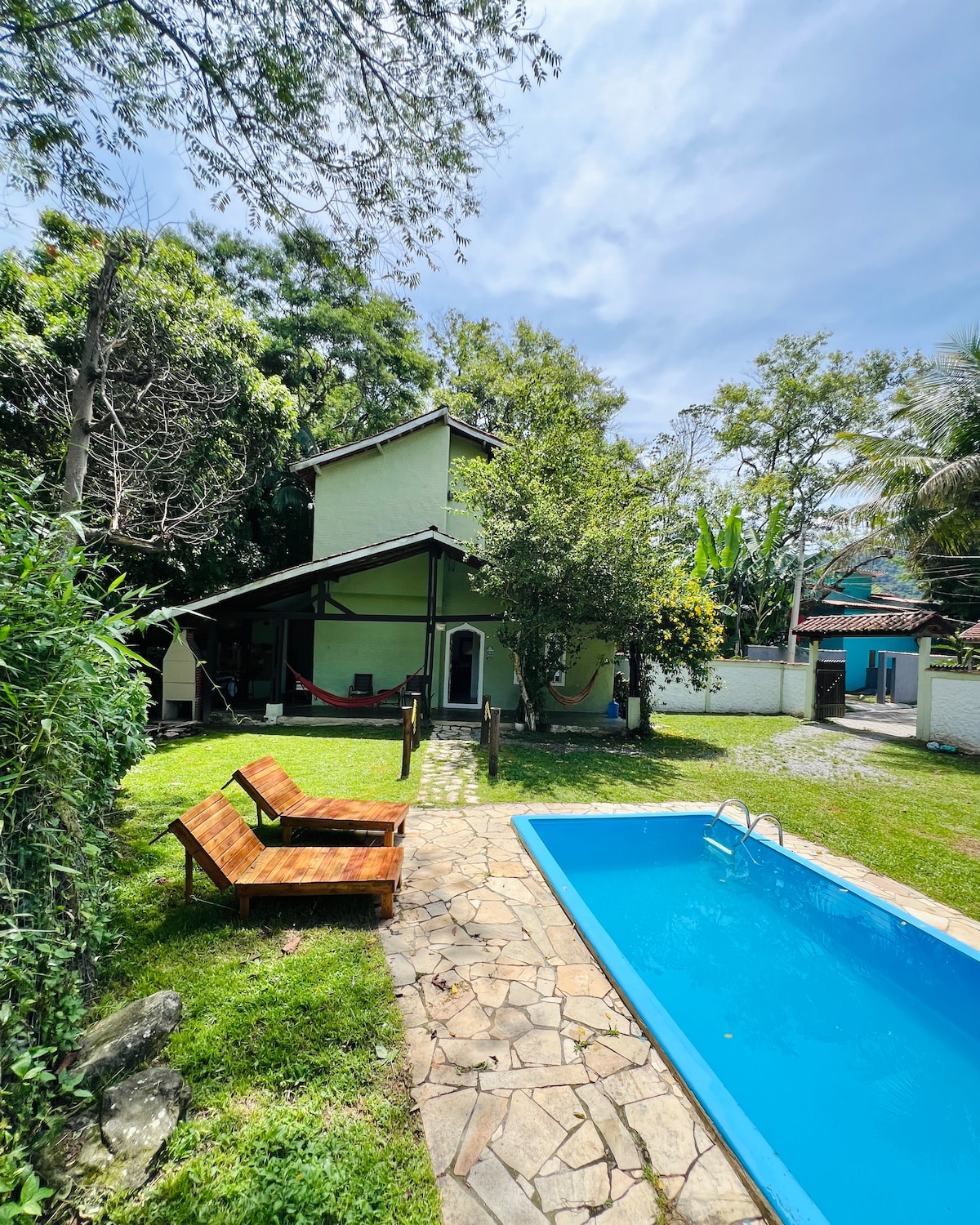 Föreställ dig på en plats där allt har förberetts med omsorg, så att du får en unik upplevelse: luften på en gård blandad med havets skönhet och på ett lättillgängligt ställe, nära motorvägen. Detta är Casa das Mangueiras! Beläget mellan en skog av mangoträd och stranden, erbjuder huset en lugn, privat miljö och en exklusiv uppvärmd pool för dig. Namaste. Vi accepterar 1 husdjur per vistelse upp till 20 kg.