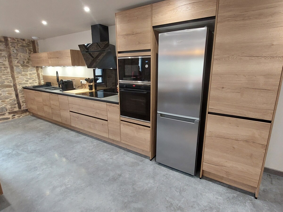 Upptäck En Haut du Paradis, en modern 94 m² miljö badad i ljus☀️, idealiskt beläget i Sadroc, i hjärtat av Corrèze. Med två sovrum med dubbelsäng🛏️, ett fullt utrustat kök och ett privat spa med 5 platser och spektakulär utsikt är det det perfekta stället att koppla av i avskildhet. Njut av lyxig komfort: luftkonditionering❄️, specialdesignade möbler, elegant badrum och en stenmur som ger charm och karaktär.