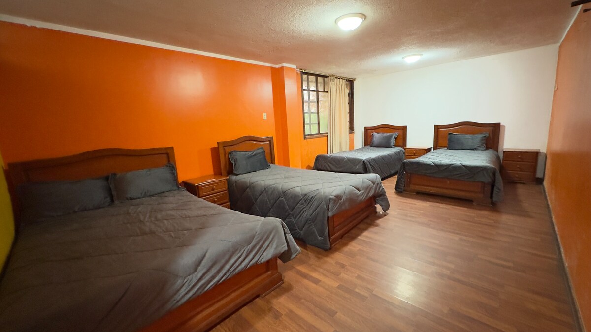 Perfekt för grupper, familjer eller resenärer som söker ett rymligt och prisvärt rum. Detta rum har fem enkelsängar, som erbjuder komfort, avskildhet och en praktisk vistelse för dem som reser tillsammans. Det inkluderar ett delat badrum, vilket garanterar en snygg, ren och funktionell miljö under hela din vistelse. Det inkluderar alla väsentliga bekvämligheter såsom sängkläder, varmvatten, Wi-Fi, TV och en lugn miljö för att koppla av efter att ha utforskat Salinas de Guaranda.