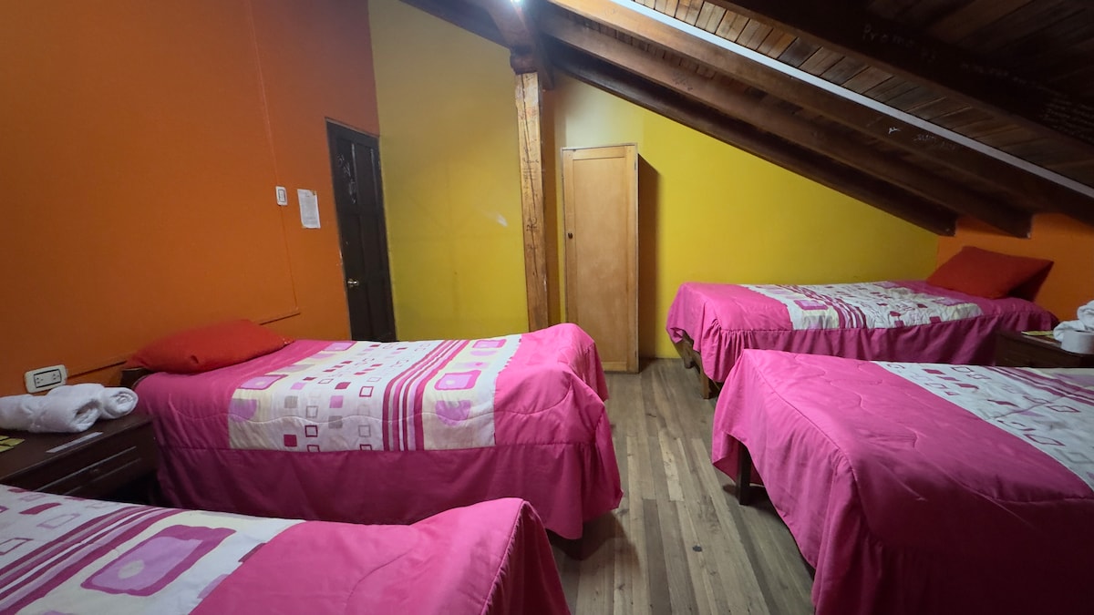 Njut av en bekväm och funktionell vistelse i vårt fyrbäddsrum, utrustat med fyra enkelsängar, perfekt för grupper, familjer och vänner som söker ett rymligt och praktiskt utrymme. Det har ett eget badrum och alla bekvämligheter på ett hotell: sängkläder, varmvatten, TV, Wi-Fi, grundläggande toalettartiklar och en välkomnande atmosfär för att koppla av efter en dags aktiviteter i Salinas de Guaranda. Ett perfekt alternativ för bekväma, smidiga och fridfulla boenden.