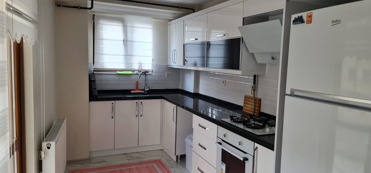 Ett prestigefyllt boende i hjärtat av staden, 3 minuter till 14 Burda Shopping Mall, 4 minuter till busstationen, mycket nära Bolu West Toll Booths. Vår lägenhet, som ligger inom gångavstånd till café, restaurang och taxistånd, består av 2 rymliga sovrum, ett modernt vardagsrum och ett fullt utrustat kök. Alla möbler är nya och moderna. Tyst, säkert och på ett anständigt ställe, perfekt för familjer och affärsresor. Vi väntar på gäster som söker komfort och frid tillsammans.
