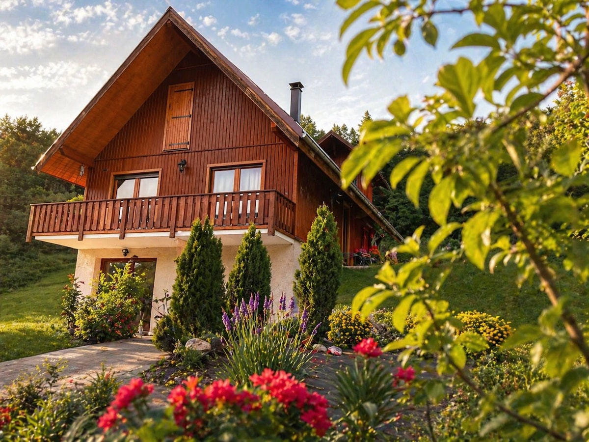 Traditionell trästuga i bergen med magnifik utsikt perfekt för par som letar efter en lugn paus nära naturen. Markerade vandringsleder erbjuds från dörren. Bottenvåningen har en ljus kök-matsal som leder direkt till söderläge terrass med uteservering för att begrunda skönheten och tystnaden i bergen. Stugan är utrustad med golvvärme, fiberoptisk WIFI, toalett, dusch och trappa som leder till ett sovrum med dubbelsäng. Privat parkeringsplats.