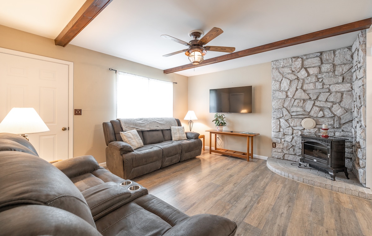 Välkommen till vår vackra lyxstuga i skogen - mer än bara ett ställe att bo på, det är en oförglömlig upplevelse. Denna specialbyggda, skandinavisk-inspirerade tillflyktsort ligger på 9 privata tunnland och erbjuder den perfekta blandningen av komfort och äventyr. Även om boendet har bara en annan gäststuga i närheten finns det INGA DELADA BEKVÄMLIGHETER, vilket garanterar att du har fullständig integritet under din vistelse. Stugan ligger nära Onondaga State Cave Park, Meramec River, Float Trips, vingårdar och lokala restauranger.