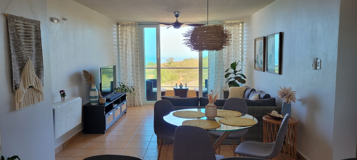 Välkommen till vår underbara lägenhet med ett sovrum och ett badrum vid havet. Beläget på en lugn halvprivat sandstrand och inom 10 minuter till alla världsberömda surfplatser, lokala restauranger och butiker. Oavsett om du söker romantik eller en familjevänlig tillflykt är vår lägenhet vid havet den perfekta fristaden. Njut av fantastiska solnedgångar och skapa oförglömliga minnen i denna del av paradiset. Vi kan knappt vänta på att välkomna dig till ditt hem vid havet hemifrån och upptäcka Rincóns magi.