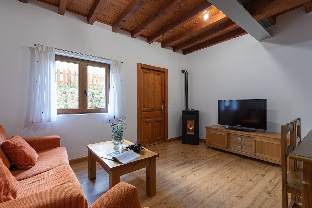 Huset har inretts med all vår kärlek, i hopp om att du ska känna dig lika bekväm som i ditt eget hem och njuta av en trevlig semester. På första våningen finns ett vardagsrum, ett fullt utrustat kök och en toalett. På andra våningen finns två mycket mysiga rum och ett badrum. Huset har en charmig trädgård med grill och utsikt över Picos de Europa. Från huset kan du gå ut och vandra på en mängd olika bergsleder.