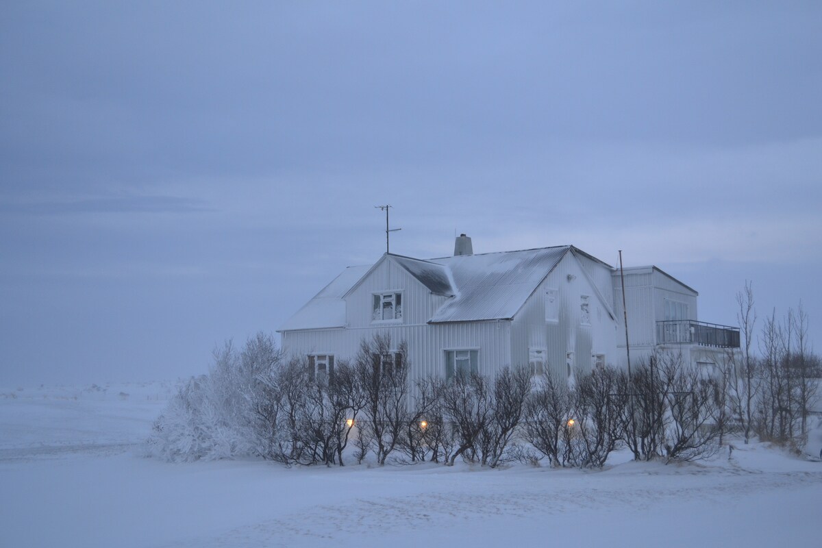 Den 1800 kvm stora lägenheten ligger i ett isländskt gårdshus från 1957 på en 360 hektar stor fritidsgård med hästar, tjurar, får, getter, kycklingar och kaniner. Hund och katt ; ). Från huset är det en 50 m promenad till stranden eller en 10 minuters bilresa till den närliggande byn Borgarnes.