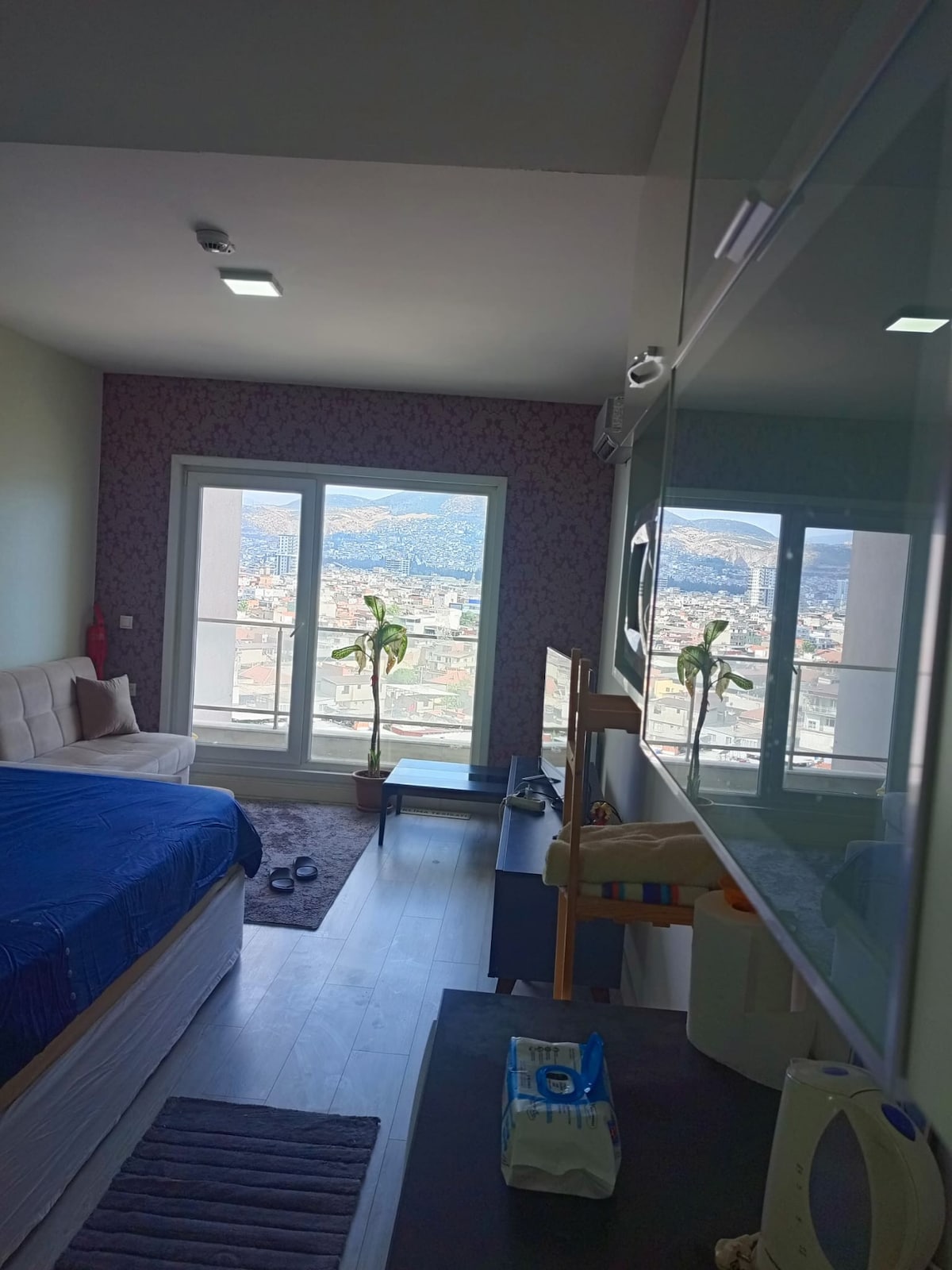 1+0 Studiolägenhet är nybyggd. Den 22:a våningen har utsikt över bukten. Alla objekt är noll. Säng, luftkonditionering, kylskåp, etc. 3 personer kan bo eller till och med 4 personer om det är svårt. Det finns ingen möjlighet att laga mat i denna lägenhet. Köket är begränsat att använda. Wifi är ännu inte anslutet. Det finns inga problem med värme eller kyla. Du kan använda gymmet. Om du vill bo här under en längre period och laga mat kan du kolla in våra andra lägenheter eller skicka ett meddelande till oss.