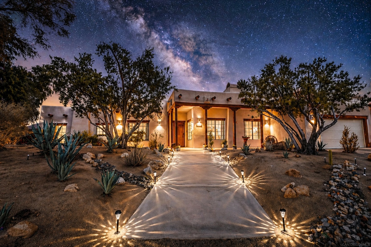 Behind the gates of our modern adobe ranch house is your private oasis while still being steps away from the vibrant but quaint little town of Wynola. Just minutes from Main Street Julian + walking distance to Julian Station with food, Julian Hard Cider, and antique shops. Skip the pie lines in Julian-- walk out your front door to get your goodies at our across-the-street neighbor, Mom's Pie! Combine it with our private Adobe Acres Ranch Casita for the ultimate private mountain retreat!