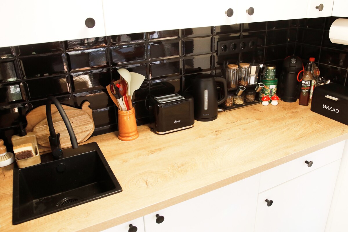 Din nya eleganta lägenhet erbjuder komfortvistelse för upp till 2 personer. Den ligger i ett nytt område bara några minuter från centrum. Platsen är fullt möblerad (köksapparater, wi-fi, Antik Smart TV, etc.) och är redo för din vistelse. Gratis parkering finns i utsett underjordiskt utrymme. Säkerheten för boendet och gäster tillhandahålls av ett privat säkerhetsföretag.