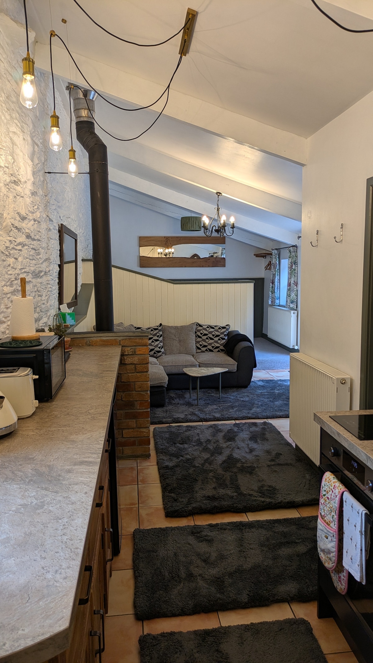 De gamla stallet har omvandlats till ett mysigt utrymme med en vedeldad eld. Omgiven av 7 tunnland mogna trädgårdar och fält finns det gott om utrymme utomhus att koppla av och utforska. Upp till två hundar är välkomna. Delat utrymme finns i det viktorianska uterummet. Gratis parkering med laddningspunkter för elbilar tillgängliga, vi ber dig lämna en donation för el som används för att ladda din bil. Ekologiska toalettartiklar tillhandahålls.