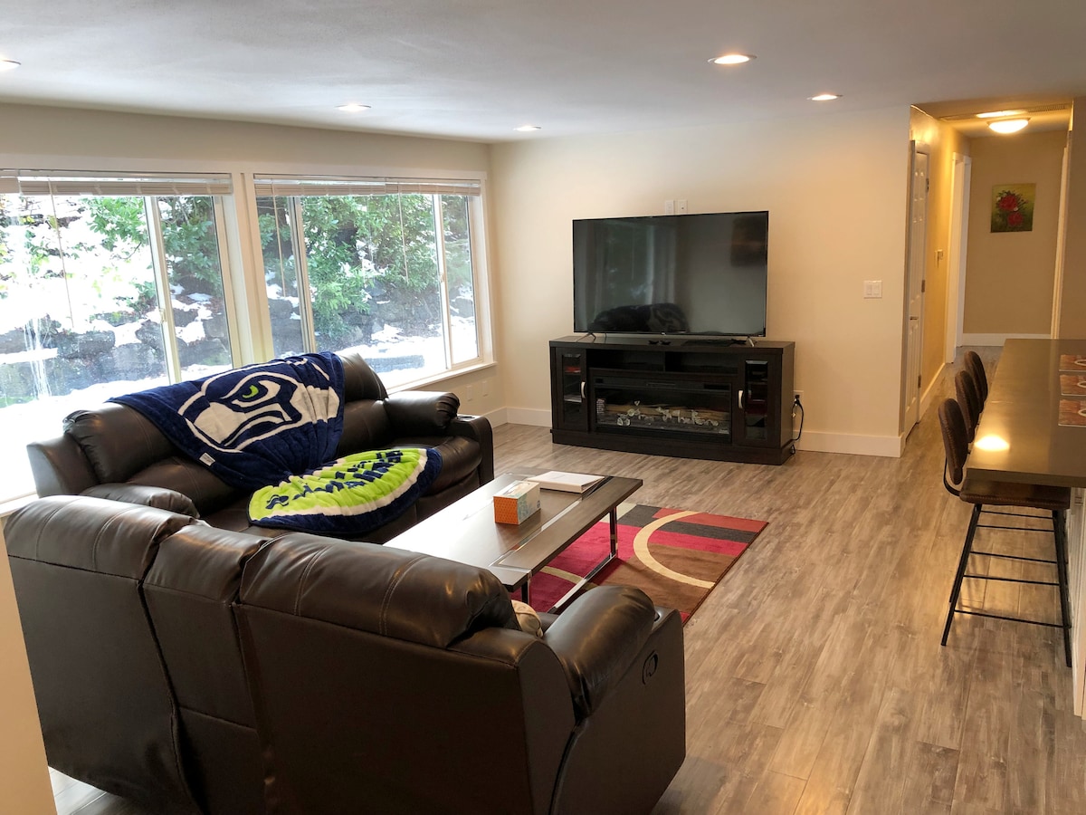 Escape to the tranquility of our uniquely designed home, embraced by the trees. With viewing windows in every space, including a cozy sunroom perfect for stargazing, you'll feel immersed in nature's beauty. Just a short drive from Boeing's Paine Field Airport(PAE), our personalized lock code ensures easy access for a stress-free stay. Every detail has been thoughtfully curated to ensure a relaxing experience. Got any questions or special requests? We're here to make your stay unforgettable!