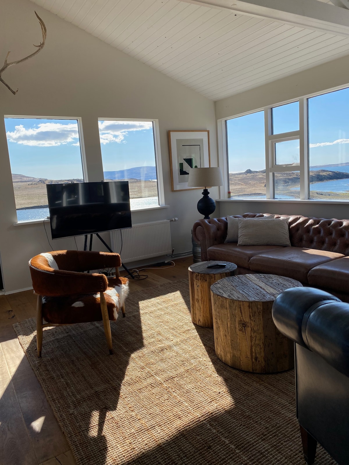 Vår 78 kvadratmeter stora stuga med 1 sovrum ligger 50 minuters bilresa från Reykjavik. Stugan är lyxig och har en utomhus naturlig vattenbubbelpool varifrån du kan njuta av norrskenet eller den fantastiska solnedgången. Vardagsrummet och balkongen har en spektakulär utsikt över fjorden och de omgivande bergen. Stugan är en utmärkt bas för dagsturer i södra eller västra Island. Gullfoss, Geysir, Thingvellir och Snæfells glaciär ligger alla inom 1-2 timmars bilresa.