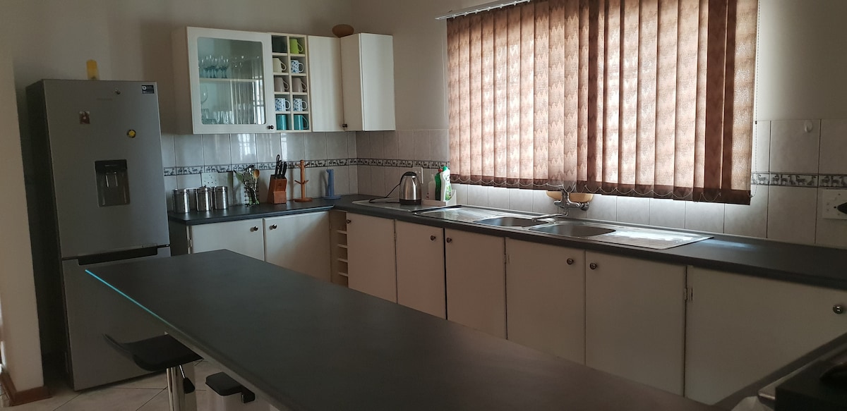 Just 3 minutes from the city centre, the Green House is a peaceful, well-located home in the heart of Francistown, Botswana. It features a 17-meter swimming pool, a private gym, Wi-Fi, and a lush green garden—a relaxing space to unwind. The room includes a comfortable lounge and a veranda, perfect for enjoying the fresh air. Meals and drinks are available at extra cost by notice with the host. Day trips (Rhino Sanctuary, Crocodile Farm, etc.) and driving services available as well.