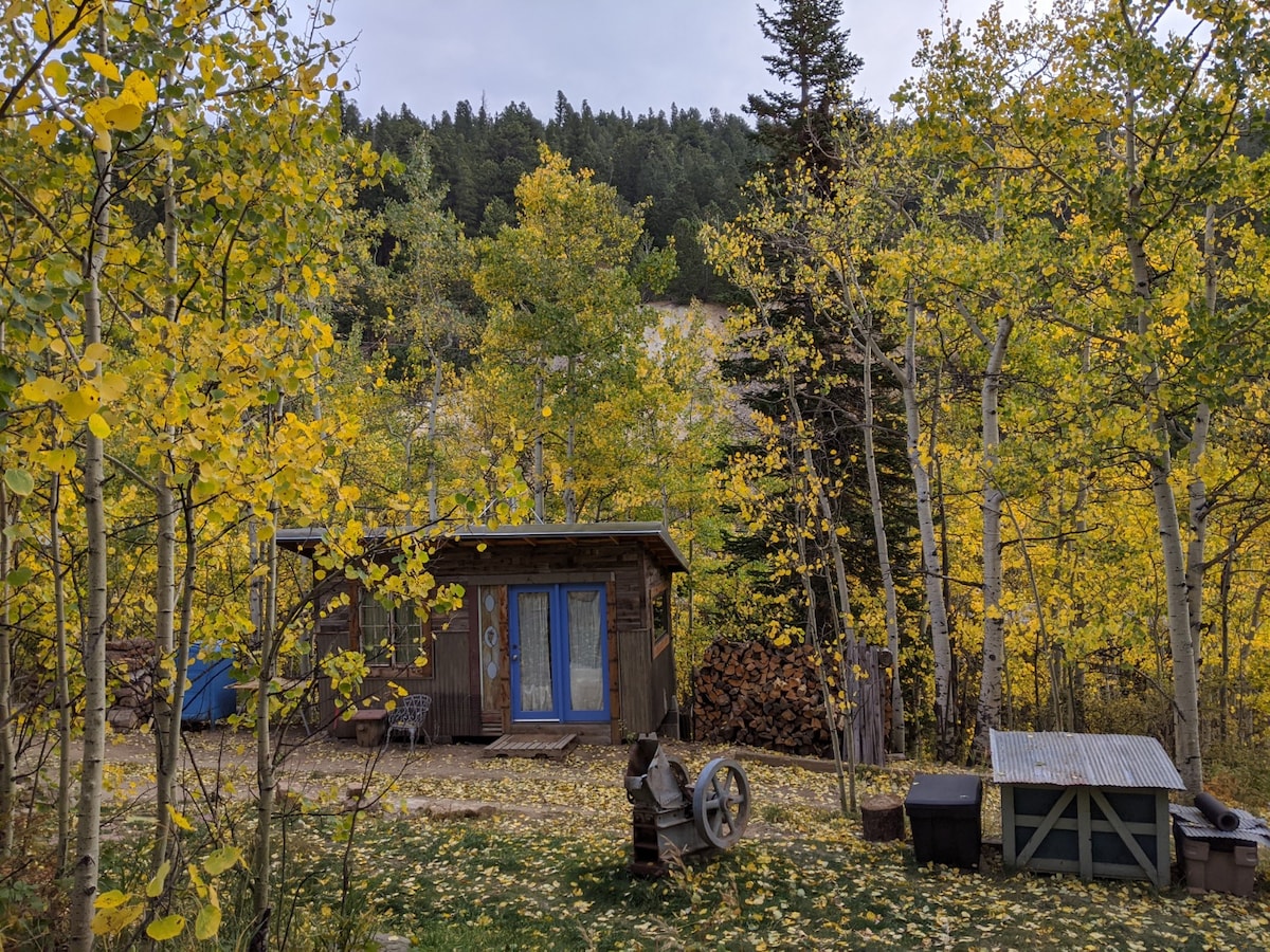 Golden Aspen – Minihus vid floden och Rocky Mtns